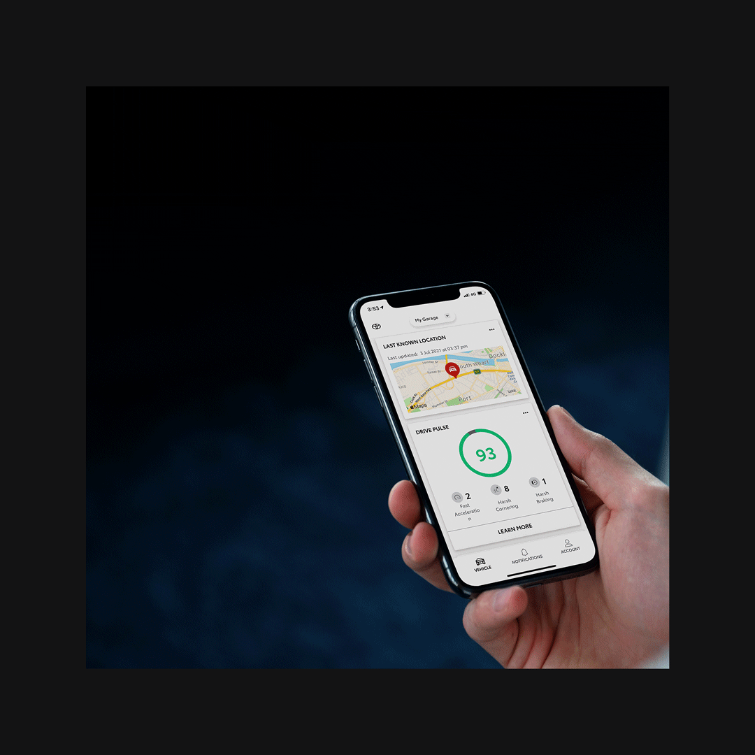 [CS16]The myToyota Connect App supports vehicles with a Build date from 2009 onwards, with or without Toyota Connected Services. A range of vehicles are equipped with Toyota Connected Services. Features vary by model. Fees & limitations apply. See toyota.com.au/mytoyota-home/connect-overview for more information.